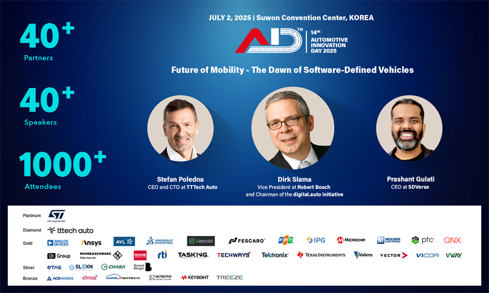 South Korea’s largest automotive E/E(electrical and electronic) technology and strategy conference, ‘Automotive Innovation Day (AID)’, will return for its 14th edition on July 2 at Suwon Convention Center. This year’s event focuses on electrification, autonomous driving, and the Software-Defined Vehicle (SDV).