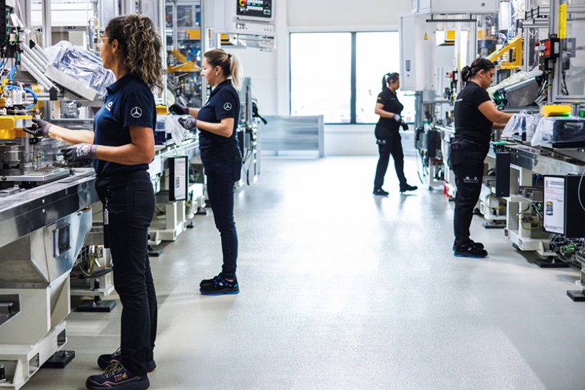 생산 라인은 약 1만5,000제곱미터에 걸쳐 있으며 길이는 약 1,000m, 그리고 200여 개가 넘는 수작업 및 자동화 공정으로 구성돼 있다. 신규 시설의 모든 작업은 세베슈 공장 내 다른 부서에서 재배치된 직원들로만 운영된다. 메르세데스-벤츠는 이들이 새로운 임무를 수행할 수 있도록 광범위한 자격 취득 및 재교육 프로그램을 지원하고 있다.