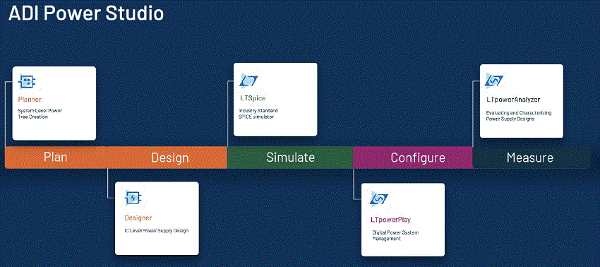 아나로그디바이스(Analog Devices, ADI)가 이러한 과제를 해결하기 위해 전원 시스템 설계와 시뮬레이션을 간소화 해주는 통합 툴 세트 ‘ADI Power Studio’를 출시했다. 이와 함께 ADI는 시스템 수준과 IC 수준의 전원 설계를 지원하는 웹 기반 툴 ‘ADI Power Studio Planner’와 ‘ADI Power Studio Designer’의 초기 버전을 공개했다. 두 툴은 LTspice, SIMPLIS, LTpowerCAD, LTpowerPlanner, EE-Sim, LTpowerPlay, LTpowerAnalyzer 등 ADI의 기존 설계 툴 포트폴리오를 보완하며, 엔지니어에게 보다 직관적이고 현대적인 설계 환경을 제공한다. 이를 통해 ADI Power Studio는 전원 시스템의 기획(Plan)부터 설계(Design), 시뮬레이션(Simulate), 구성(Configure), 측정(Measure)에 이르기는 전 과정을 하나의 통합된 툴체인으로 연결한다.