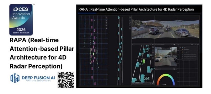 딥퓨전에이아이는 CES 2026 현장에서 RAPA의 실시간 데모를 선보일 예정이며, 자율주행과 국방 등 다양한 산업군에 적용 가능한 고정밀 실시간 인지 기술을 공개할 예정이다.