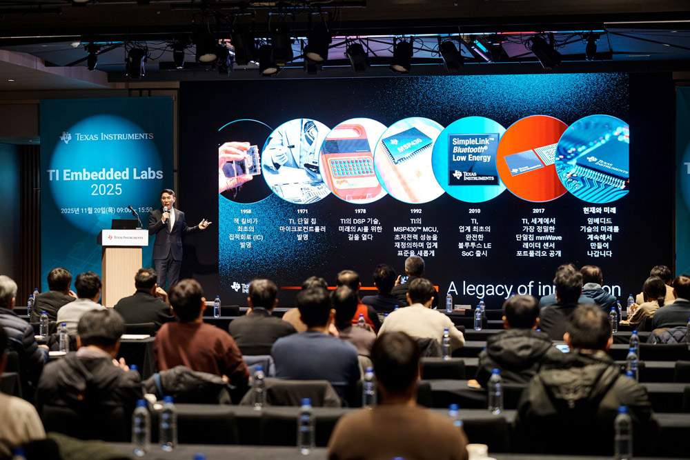 텍사스 인스트루먼트(TI)가 20일 서울 삼성동 웨스틴 서울 파르나스에서 ‘TI 임베디드 랩스 2025 코리아(Embedded Labs 2025 Korea)’를 개최했다. 이번 행사는 임베디드 프로세싱, 엣지 AI, 모터 제어, 차량용 센서 융합, 기능 안전, 사이버 보안 등 최신 임베디드 기술 트렌드를 공유하는 기술 중심 행사로, 자동차·산업·IoT 분야의 엔지니어와 업계 전문가 150여명이 참석했다.