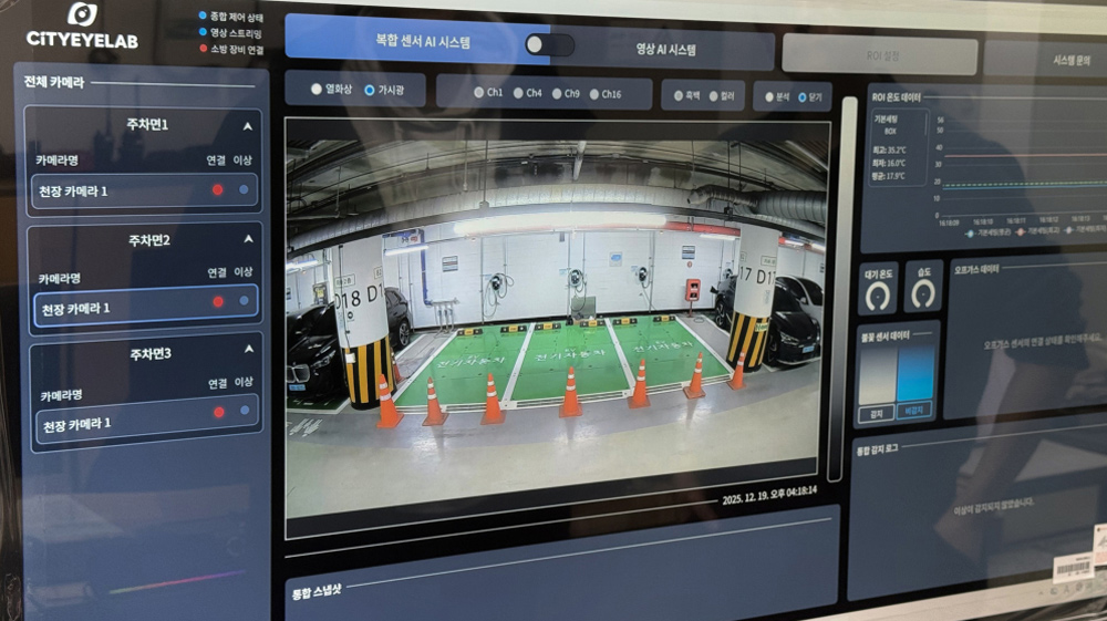 육송의 ‘전기차 화재 확산방지 시스템’은 ▲신형 감지 시스템, ▲상향식 직수 분사 시스템, ▲감지기 연동 자동 분사 기술 등 20여 개에 달하는 신기술을 적용해 높은 평가를 받았다. 특히 감지선형 감지기, 불꽃 감지기, AI 복합 감지기(옵션) 등 3중 체계로 정확하고 신속한 무인 화재 감지와 자동 물 분사가 가능하다. AI 복합 감지기는 행정안전부로부터 재난안전신기술(NET) 인증을 받은 복합 영상기반 화재감지 시스템을 채택했다.