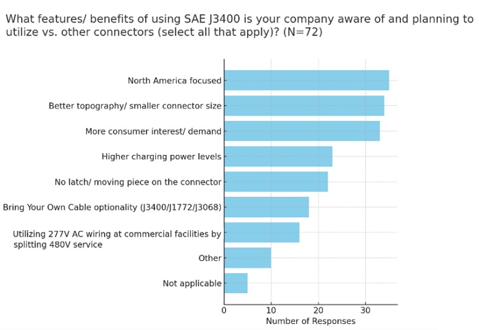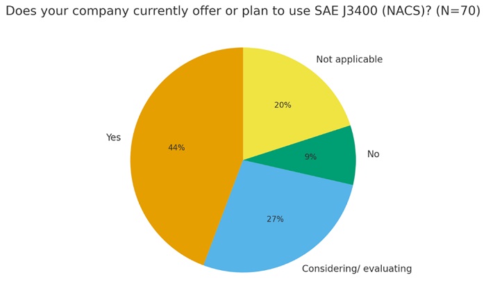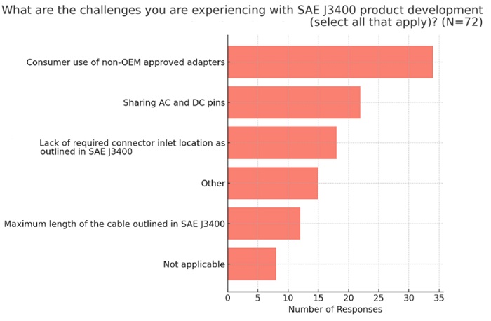이러한 전환 과정에서 업계의 우선순위를 파악하기 위해 CharIN 산하 북미 상호운용성위원회(NACI) 태스크포스는 2025년 산업 전반을 대상으로 설문조사를 실시했다. 이 조사에는 완성차 업체, 충전기(EVSE) 제조사, 플릿 운영사 등 다양한 이해관계자가 참여했다. 조사 결과 SAE J3400 채택에 대한 높은 관심과 함께 어댑터 안전성, AC/DC 핀 공유 구조, 일관된 인렛 위치와 관련한 우려가 제기됐다. 동시에 커넥터의 컴팩트한 설계, 북미 충전 요구사항과의 정합성, 증가하는 소비자 수요는 NACS 채택을 뒷받침하는 주요 장점으로 꼽혔다.