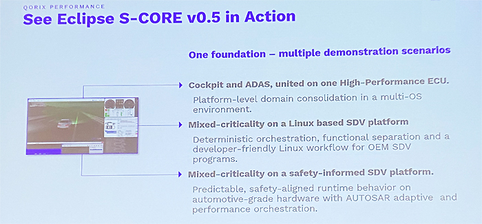 “이것은 단지 비전이 아니라 우리가 여러 행사에서 이미 보여준 것입니다. 우리는 하나의 기반을 통해 여러 데모 시나리오를 제공합니다. 하나는 고성능 ECU 위에서 멀티 환경을 통합(consolidation)하는 시나리오입니다.”