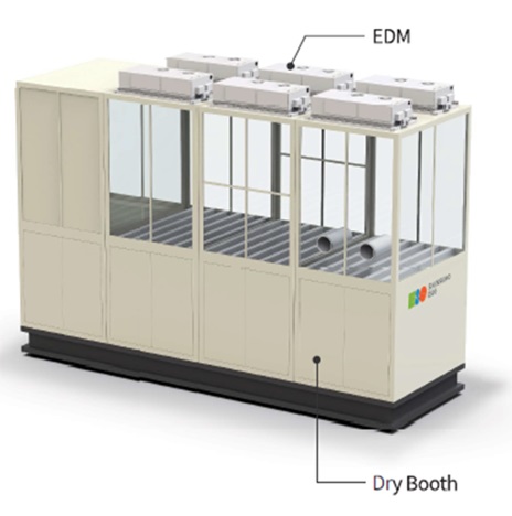 드라이부스 또는 생산설비 상부에 설치 가능한 EDM(Equipment Dehumidify Module)은 EFU(Equipment Fan Filter Unit)를 설치 위치에 적용할 수 있어 공간 활용성이 높고, 파티클과 절대습도를 동시에 저감할 수 있는 것이 특징이다. SDU(Stand Dehumidifier Unit)는 드라이부스나 드라이룸 내부에 자립형으로 설치되는 제품으로, 고풍량 처리가 요구되는 공정에 적합하다.
