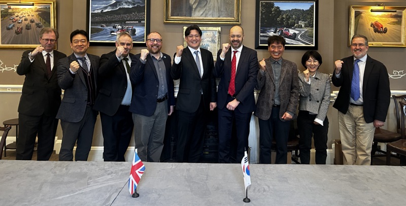 3월 3일(화) 영국 런던 로얄 오토모바일 클럽(RAC))에서 KADIF(사업단장 정광복, 왼쪽에서 다섯 번째)와 영국 자율주행 혁신기관 ZENZIC(CEO Ian Constance, 오른쪽에서 네 번째) 간의 ‘AI 기반 자율주행 기술 협력을 위한 업무협약(MOU)’ 체결식이 열렸다.