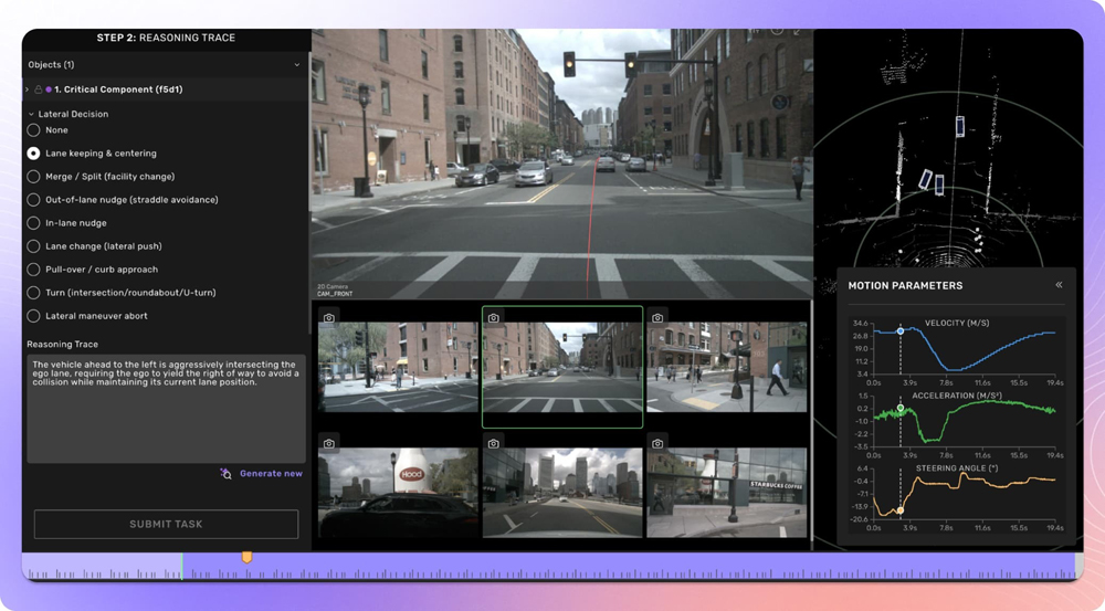 주행 상황에 대한 판단과 의사결정 과정을 추적하는 ‘reasoning trace’. 자율주행은 인식이 아니라 판단의 문제로 확장되고 있다.