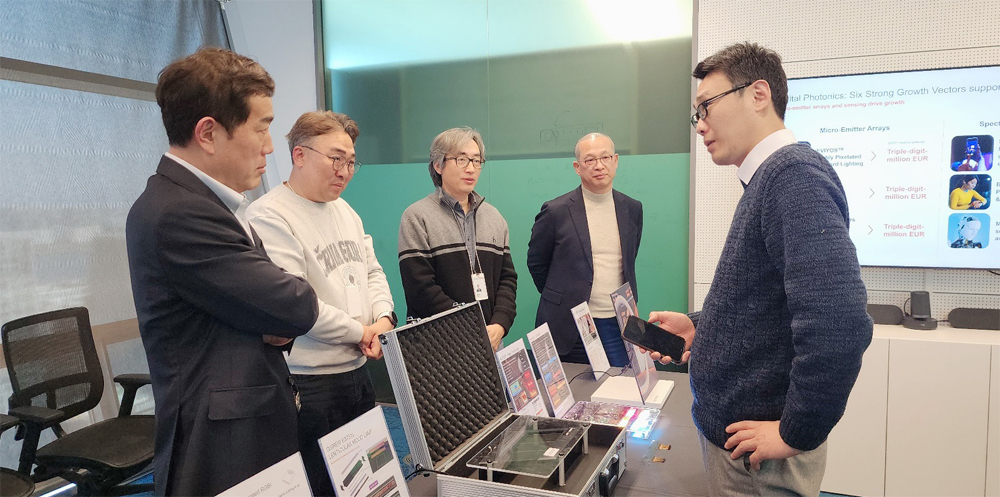 전자공학이 전자를 다룬다면 포토닉스는 광자, 곧 빛을 다루는 기술이다. 회사 브로슈어에 있으면 흔하게 지나갈 수 있는 표현인데, 실제 설명 안에서는 꽤 구체적이다. 보통 LED 업체는 광원에 강하고, 센서 회사는 센서에, 종합 반도체 회사는 IC에 강하다. 그런데 ams OSRAM은 광원을 만들고, 그 광원을 구동하는 IC를 설계하고, 그 빛을 감지하는 센서까지 함께 다룬다. 빛을 내고, 제어하고, 다시 읽는 전체 루프를 하나의 체계 안에 넣고 있다는 의미다. 강 대표는 이를 두고 “보통 광원 업체가 IC를 개발할 수 있는 역량을 가진 곳은 전무하다고 보시면 됩니다”라고 했다.