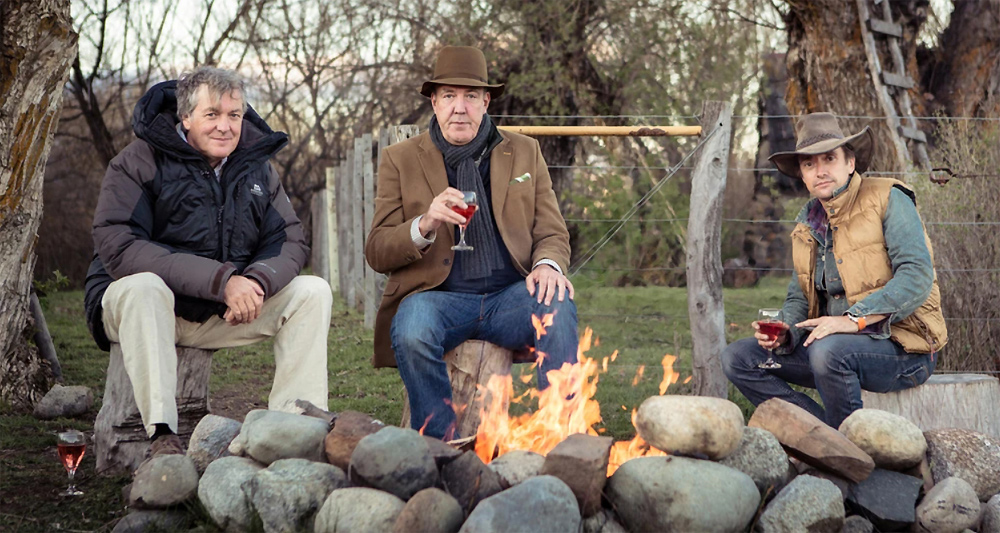 Clarkson (center), Hammond (right), and May. What we watched on Top Gear was not the car, but the living context created by these three men.