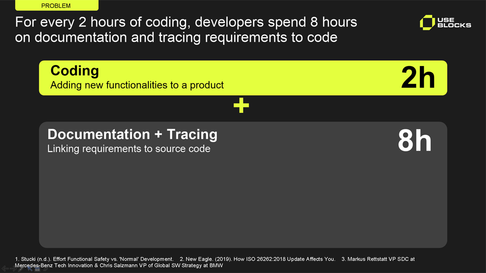 Pabinger useblocks는 매우 구체적인 문제에서 출발했습니다. 당시 저희는 BMW 프로젝트에서 순수 엔지니어들만으로 구성된 팀이었고, ISO 26262 환경 아래에서 개발을 진행하고 있었습니다. 이 말은 곧 추적성이 선택사항이 아니라 반드시 충족해야 하는 엄격한 요구사항이라는 뜻이었습니다. 우리는 언제 어떤 시점이든 작성된 코드가 어떤 요구사항으로부터 비롯되었는지, 그리고 그 요구사항이 다시 어떤 안전 목표와 연결되는지를 명확히 입증할 수 있어야 했습니다. 바로 거기서 저희는 기존의 툴체인이 개발자들의 실제 작업 방식과 맞지 않는다는 사실을 절감하게 됐습니다.