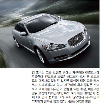 필자는 재규어에 높은 관심을 가지고 있다. 최근 재규어 모델은 페이스 리프트한 XF와 XJ 모델을 중심으로 F 타입과 XE 모델이 가세해 다양성을 더하고 있다. 랜드로버만큼 판매가 급상승하지는 않았지만 꾸준하게 인기를 높여가는 모델이다. 재규어가 독특하고 인기를 끌 수 있는 이유는 바로 디자인부터 남다르다는 데에 있다. 유사한 디자인이 없는 만큼 멀리서도 단 번에 알 수 있다. 그렇다고 타 메이커에서 크게 도드라지는 것도 아니다. 수려하고 매끄러운 디자인과 안정감 있는 배분, 어울리는 앞뒤 모습은 더욱 안기는 디자인이다. 특히 여러 해를 걸치면서 전체 디자인의 변화를 크게 주지 않으면서도 재규어만의 디자인과 철학을 담고 있다. 가장 좋아하는 모델은 현재보다 바로 이전의 XF3.0 모델이다.