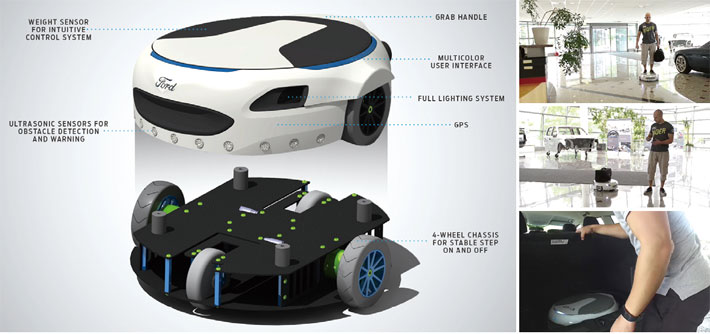 2016 퍼더 위드 포드와 함께 포드가 언급한 또 다른 핵심 발명은 독일 쾰른의 포드 시스템 엔지니어 킬리안 바스(Kilian Vas)가 디자인한 마이크로 모빌리티 솔루션이다. 유럽에서 생활하는 그는 모든 도시교통의 마지막 부분, 라스트마일이 생각보다 쉽지 않다는 것을 잘 알고 있다. 예를 들어 막 기차에서 내렸거나, 차를 주차했다면 목적지까지 도보로 가거나 자전거등을 타야하는 경우가 대부분이다. 때문에 사람들은 도심을 돌아다니고, 도시에서의 편리한 생활을 위해 혁신적인 이동 솔루션을 요구하고 있다.
