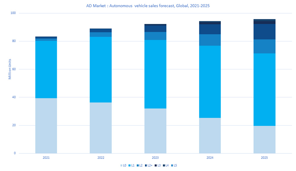 OEM 관점에서 자율주행 시장은 레벨 3가 규제 프레임워크 부족과 저속으로 제약된 낮은 가치 제안으로 표류할 수년 동안 레벨 2, 레벨 2+ ADAS의 전례 없는 성장에 대비 중이다. 유엔 유럽경제위원회(UNECE)의 최고시속 60 km 제한 레벨 3 자율주행 시스템 안전규정(ALKS 대한) 발표가 OEM의 레벨 2+ 우선 전략을 지원하고 있다.