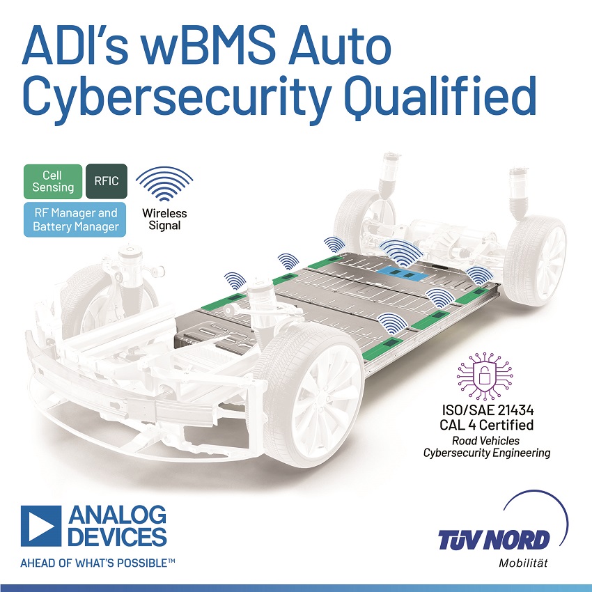 ISO/SAE 21434 인증 평가 수행 기관인 TÜV NORD Mobilität는 ADI의 wBMS가 ISO/SAE 21434 인증을 획득한 최초의 차량용 시스템이라고 했다. 이번 평가는 ADI가 제품 개발 과정에서 CAL 4 요구사항을 충족하기 위해 적절한 보장 조치를 수행했음을 인증한 것이다.