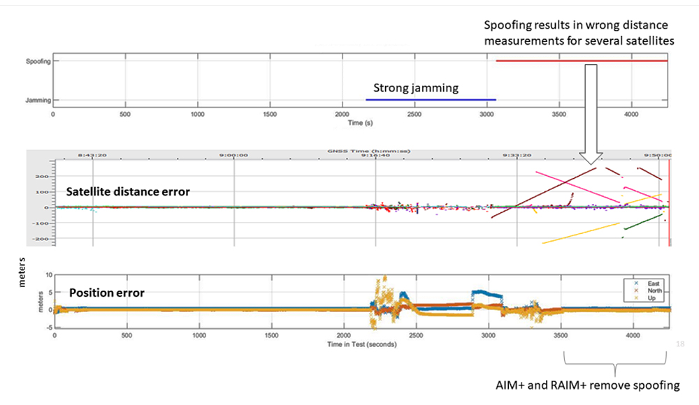 진실한 측위 불확실성 보고의 기본 메커니즘은 RAIM(Receiver Autonomous Integrity Monitoring)으로, 통계 분석과 정상에서 벗어난 위성 또는 신호의 배제를 기반으로 진실한 측위 계산을 보장한다. 센텐트리오 수신기는 높은 무결성을 위해 설계됐으며 RAIM+로 RAIM을 한 단계 높임으로써 높은 신뢰도로 측위의 진실성을 보장한다. 셉텐트리 수신기 RAIM+는 실제로 AIM+ 안티-재밍과 안티-스푸핑 방지, 이온권 섬광에 대한 IONO+ 복원력 및 APME+ 다멀티 경로 완화를 포함한 다양한 수준의 측위 보호 기능을 포함하는 GNSS+라고 하는 포괄적인 수신기 보호 제품군의 구성요소다.