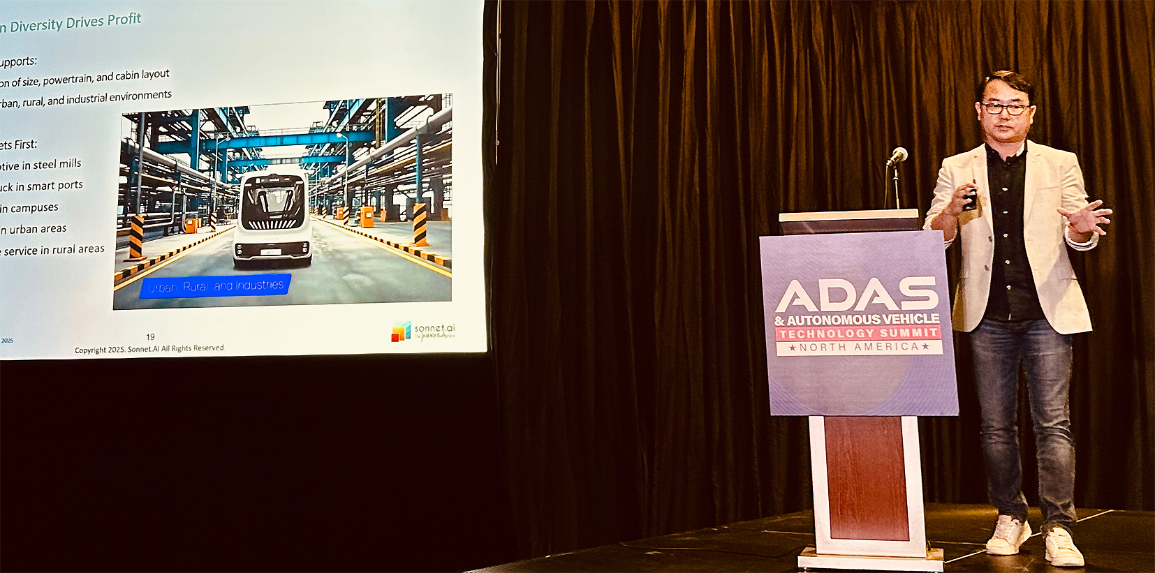 At AVTS North America 2025, Dr. Joonwoo Son, founder of Sonnet.AI, delivered a keynote titled “Autonomy by Design: Real-World Lessons Shaping the Roboshuttle Vision.” He emphasized that autonomous driving must move beyond a race of sensors and algorithms to become something that people genuinely trust — shaped by comfort, real-world experience, and operational reality.