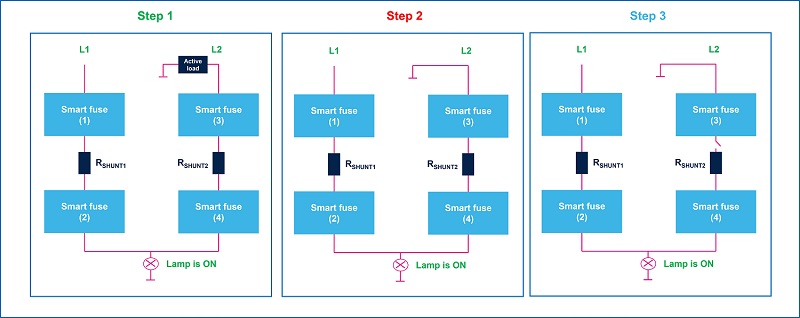 - L2는 스마트 퓨즈 3에 의해 개방(분리)되어 단락을 효과적으로 차단한다.