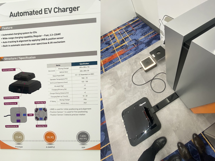 부스에서 먼저 눈에 띈 것은 초소형 패키지 기반의 차세대 무선충전 컨셉이었다. 차량은 탑재 공간이 정해져 있고 차종이 한 번 고정되면 구조 변경이 쉽지 않다. 그래서 ‘소형화’는 단순한 크기 경쟁이 아니라, 넣을 수 있는 위치가 늘어나는 적용 전략이다.