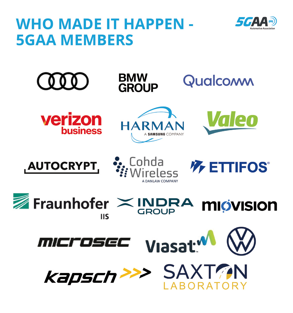 이 데모에는 폭스바겐·아우디·BMW 등 글로벌 OEM을 비롯해 하만(Harman), 발레오(Valeo) 등 주요 티어 1, 그리고 캡쉬(Kapsch), 인드라(Indra) 등 글로벌 도로 인프라 기업들이 참여해 V2X 통신 기반의 차세대 교통안전 및 결제 서비스에 대한 관심을 보였다.